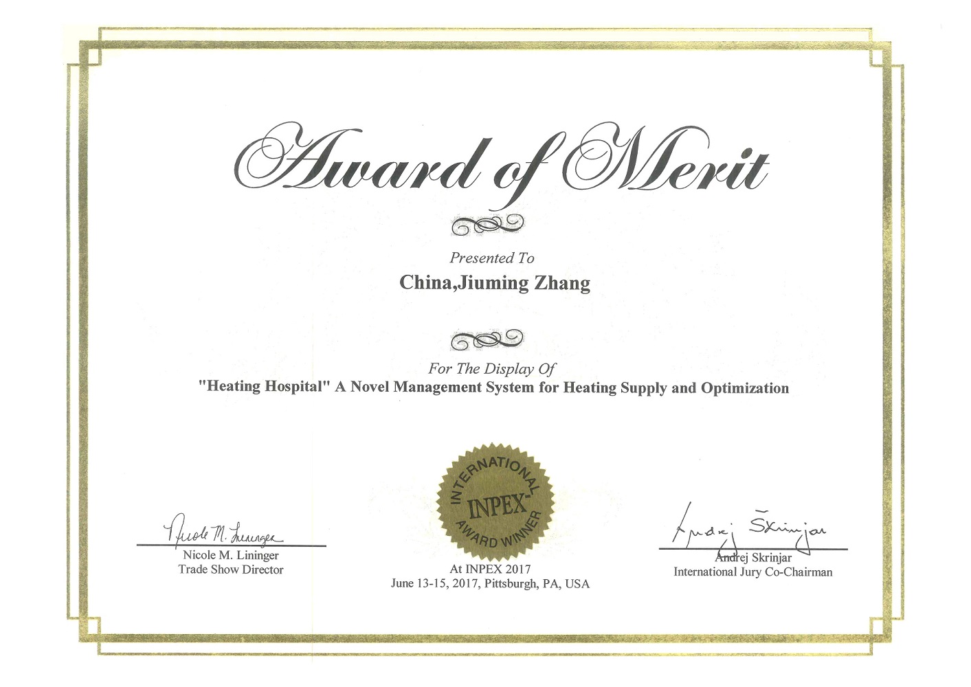 暖氣醫院優秀發明金獎